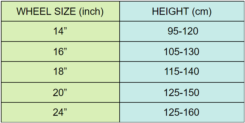 Once you have determined the height and identified the types of bicycle wheels, compare the table below and make a decision about the size of the child's bike. Besides, you should choose a brand of quality and safe bikes for children.
